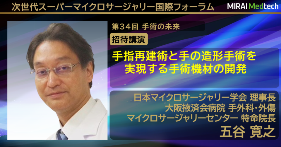 第34回講演会は、日本マイクロサージャリー学会理事長の五谷寛之先生をお招きし、「手指の機能と美を再建する究極の造形手術」をテーマに開催いたします。手指の重度損傷に対し、機能回復と美的再建を両立させる「造形手術」を詳述 。ロボティックマイクロサージャリーと熟練の「匠の技」の融合により、患者のQOLを劇的に向上させる最先端のアプローチを紹介します。手の外科における技術革新と芸術性にご期待ください。