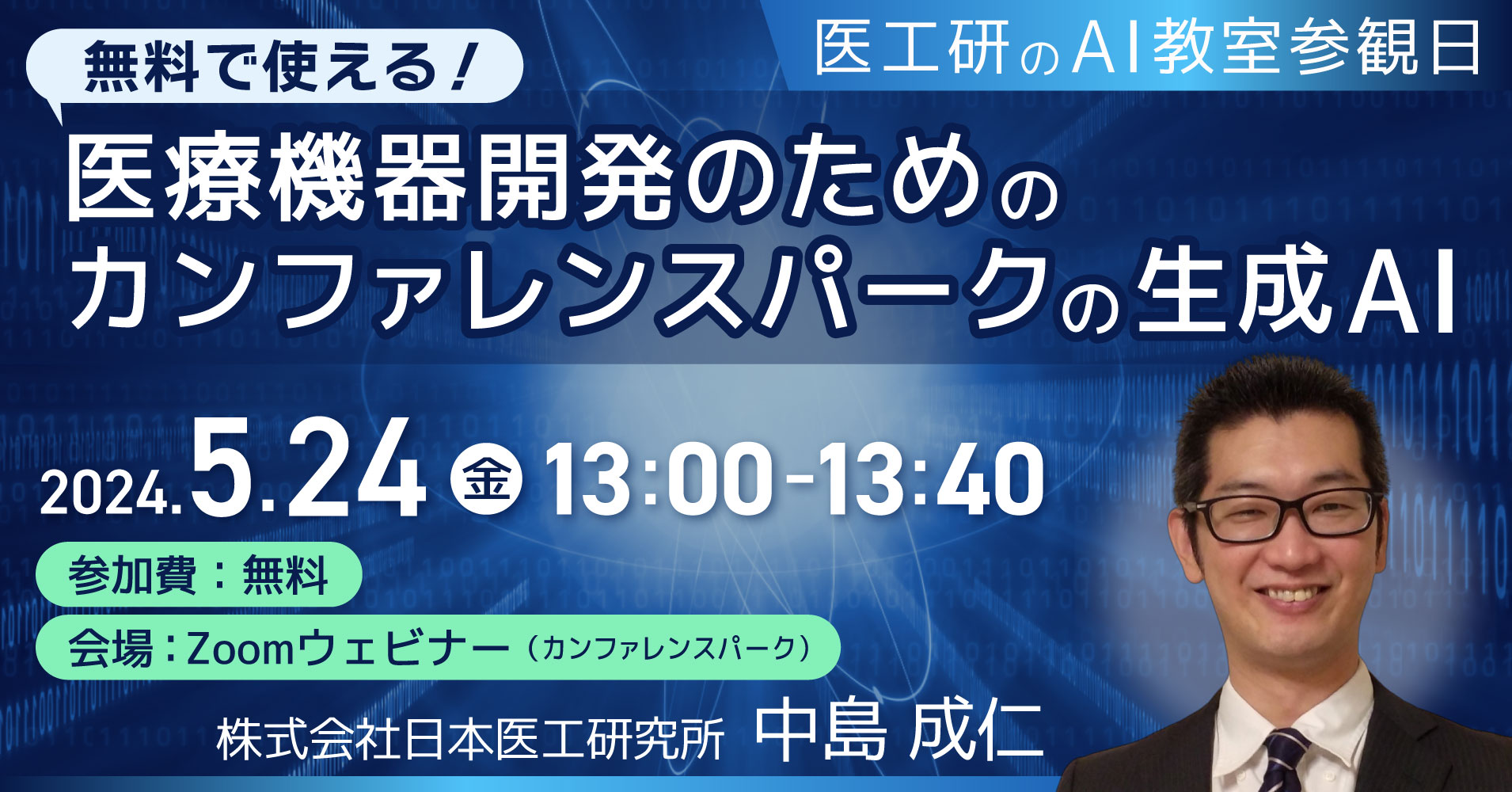 「医工研のAI教室参観日」 〜無料で使える! 医療機器開発のためのカンファレンスパークの生成AI〜