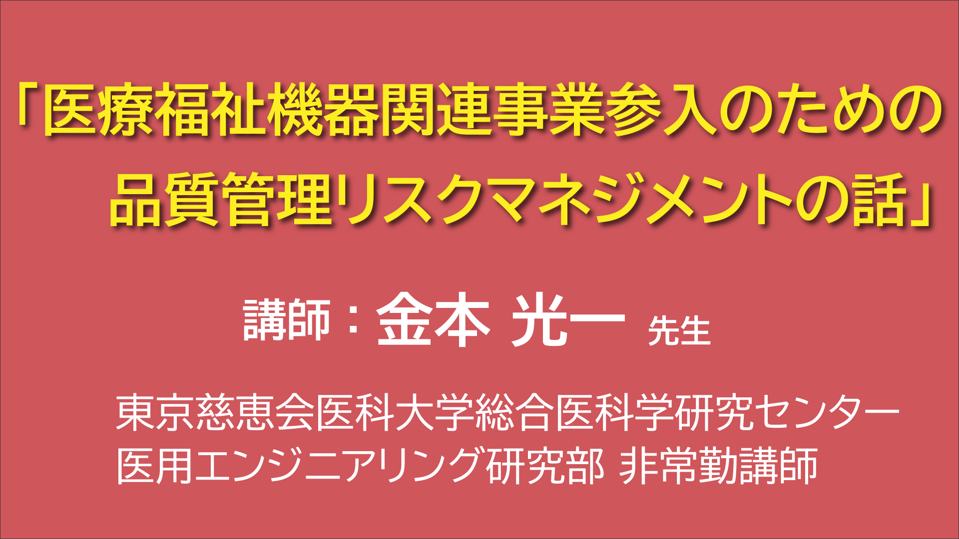 【第2回10/8】1.医療福祉機器関連事業参入のための品質管理リスクマネジメントの話